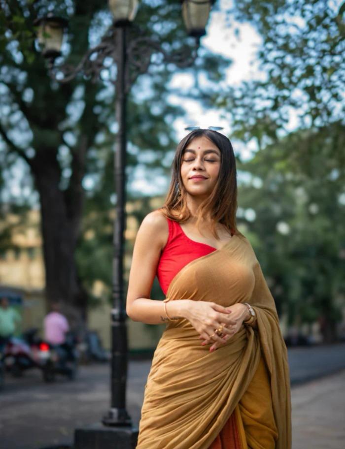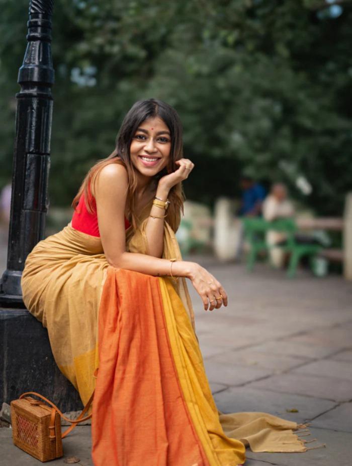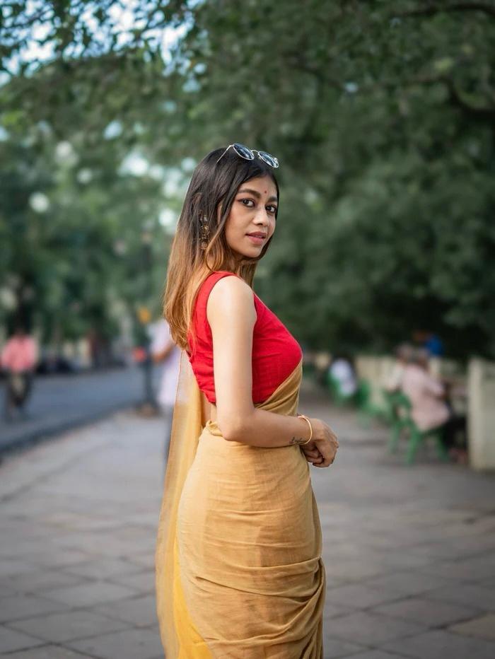 Multi color office wear plain khadi cotton saree