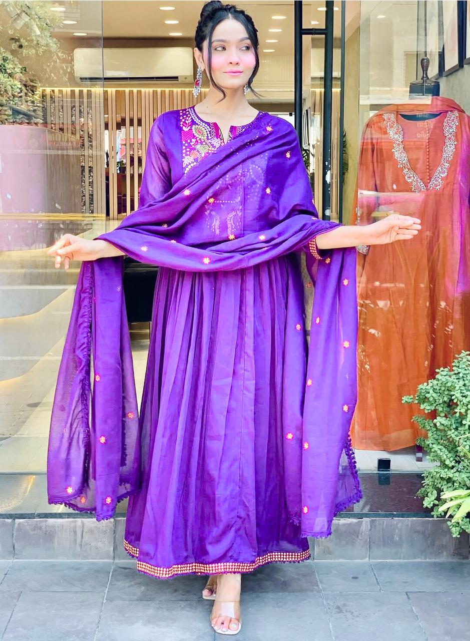 Purple soft mul cotton kurta and dupatta with embroidery work